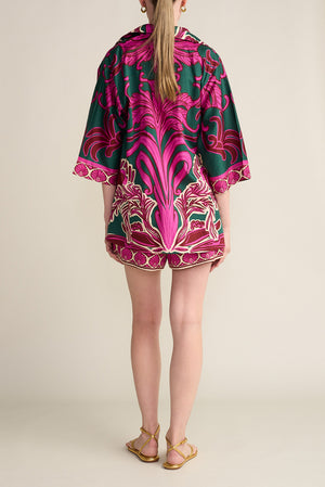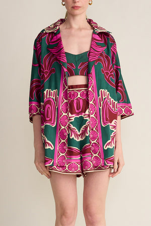 A loose-fitting shirt in a striking tropical-inspired print. Made with lightweight fabric, it features a relaxed silhouette and medium-length sleeves for an elevated yet timeless look.