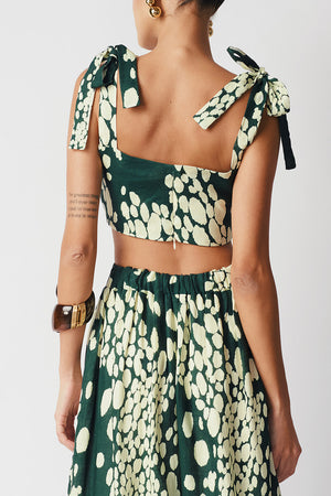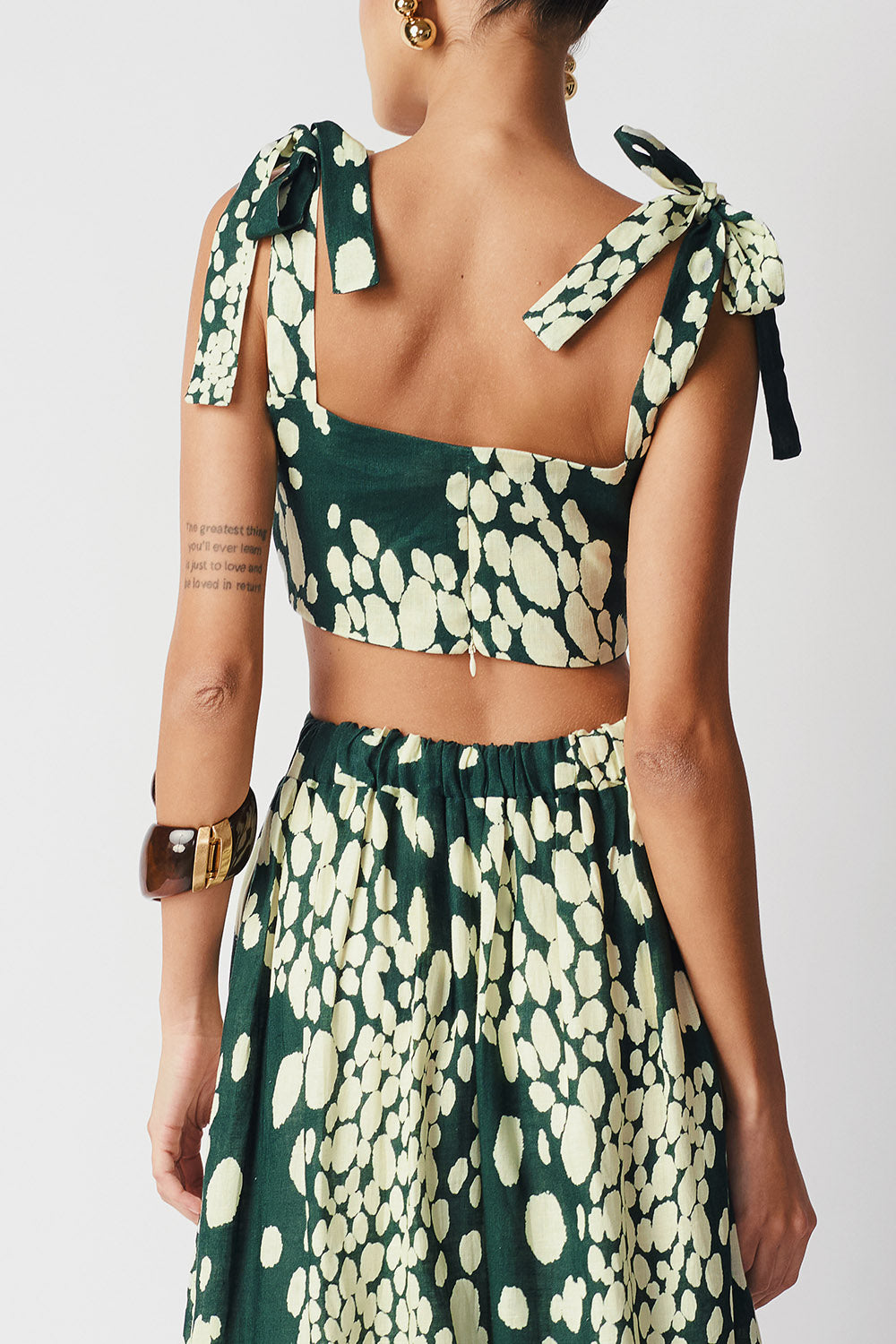 A fitted crop top with wide straps and a back zipper for a snug fit.