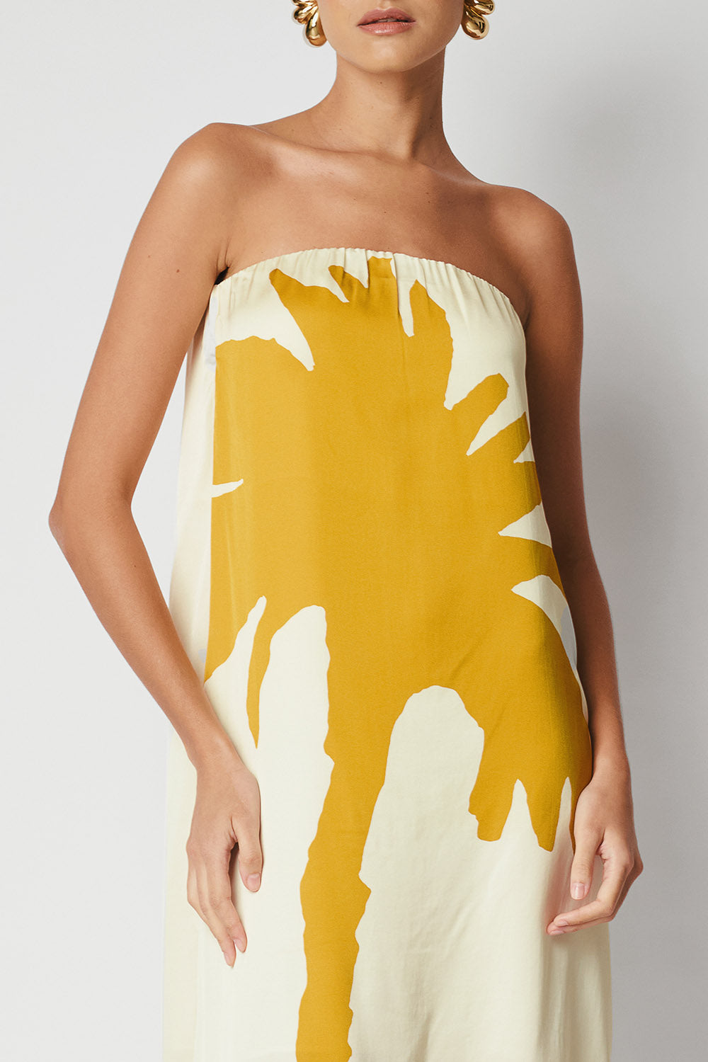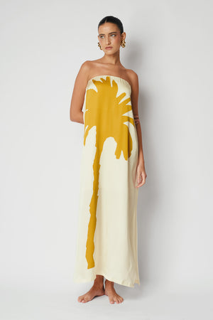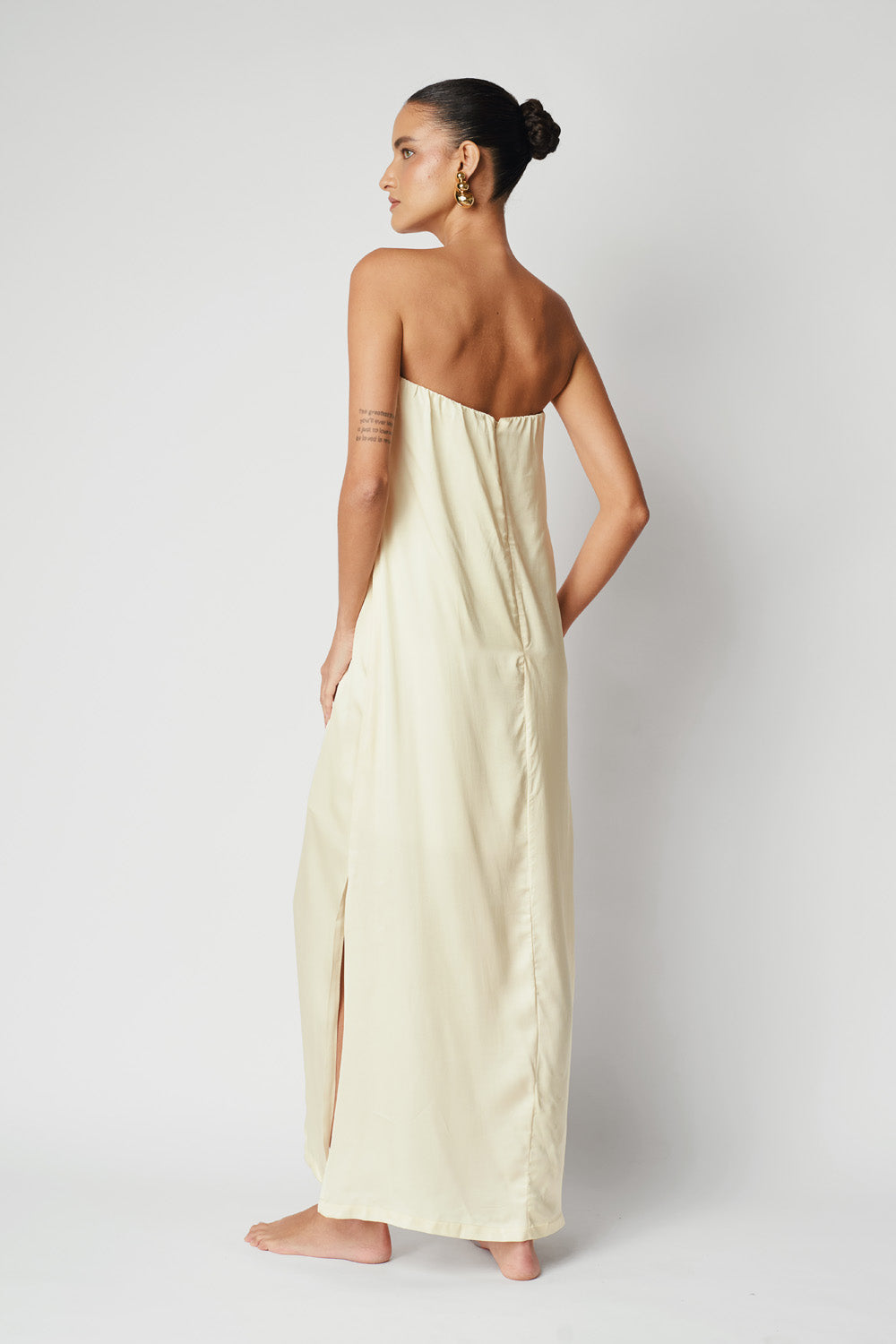A subtle maxi dress featuring a lightweight fabric, breezy design and zip on the back for an elegant and effortless look.